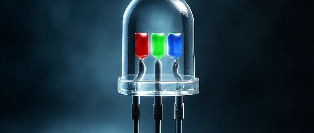 Aquí no hay inteligencia interna: son tres LEDs independientes (rojo, verde y azul) que comparten un pin común (normalmente GND o Vcc).